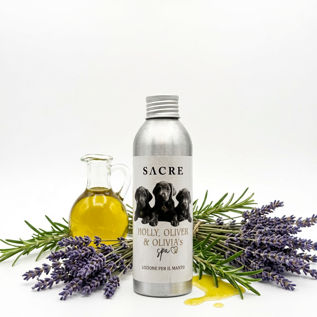 - Olio extravergine di Oliva bio dell’Az. agr. Di Sorano (GR): nutre e protegge il manto in profondità, lasciandolo morbido e lucente.